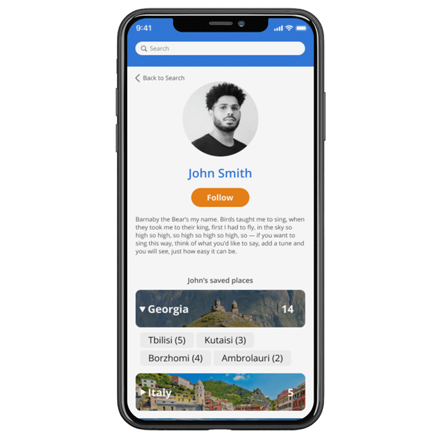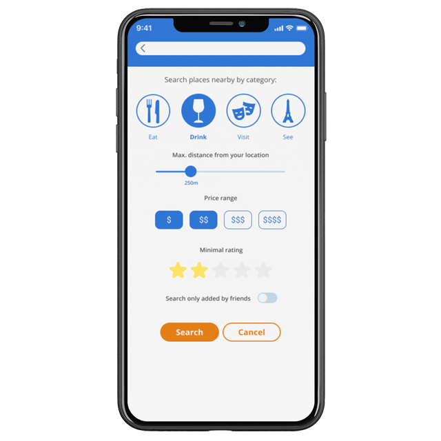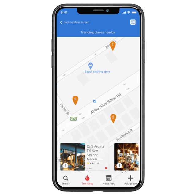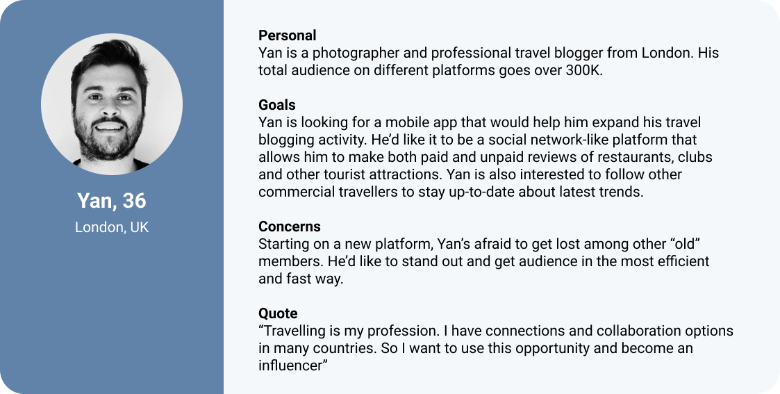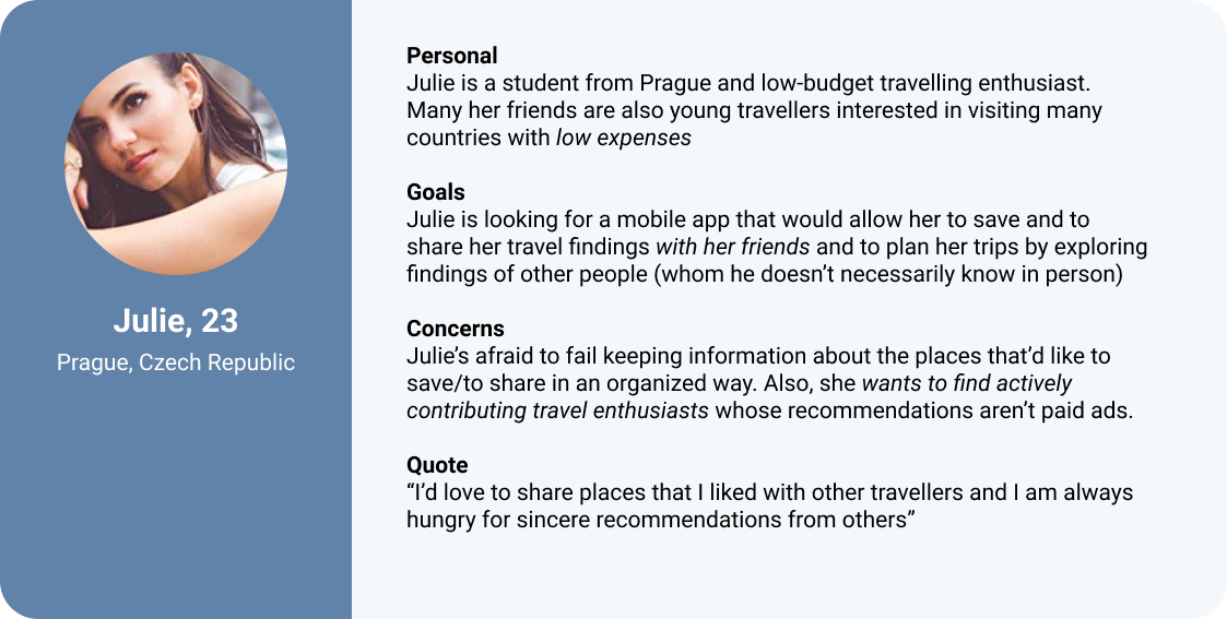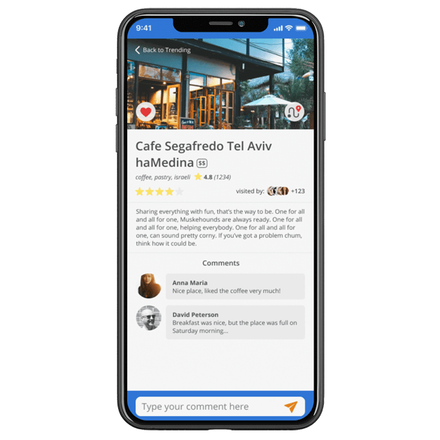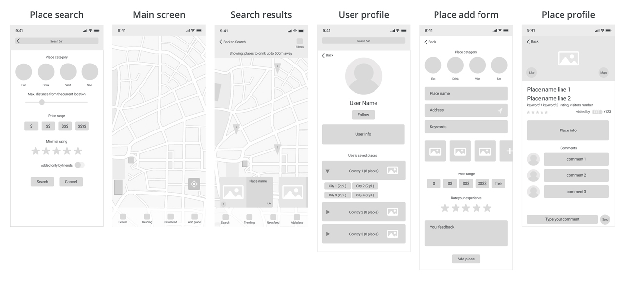 I realized that the solution to this problem could be a mobile application — a hybrid of a map and a social network — with which people will be able to follow their friends or other active travelers, see their live updates and find good places.